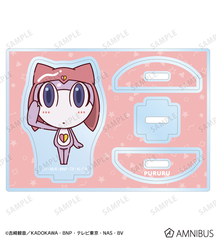 プルルがちょこんと立っているちびキャラを新たに描き起こし、ゆれるアクリルスタンドに仕上げました。