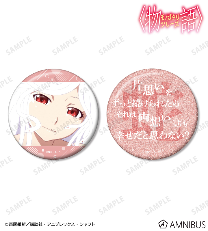 『〈物語〉シリーズ』より、75mm缶バッジ2個セットの登場です。