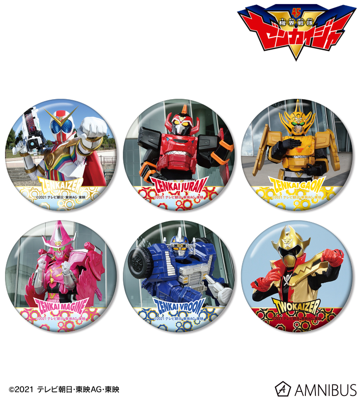 ゼンカイザー、ゼンカイジュラン、ゼンカイガオーン、ゼンカイマジーヌ、ゼンカイブルーン、ツーカイザーを缶バッジに仕上げました。