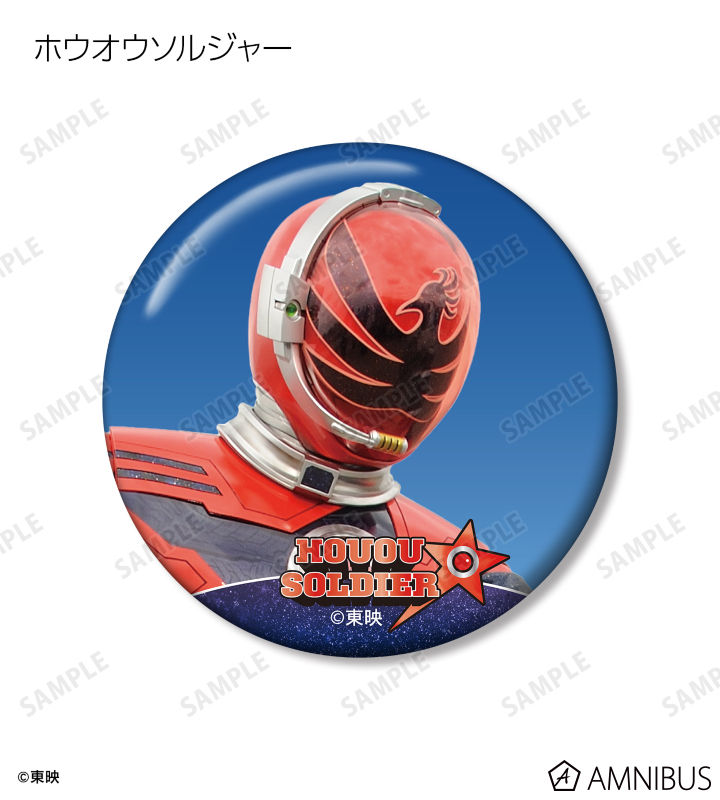 シシレッド、サソリオレンジ、オオカミブルー、テンビンゴールド、オウシブラック、ヘビツカイシルバー、カメレオングリーン、ワシピンク、カジキイエロー、リュウコマンダー、コグマスカイブルー、ホウオウソルジャーを缶バッジに仕上げました。