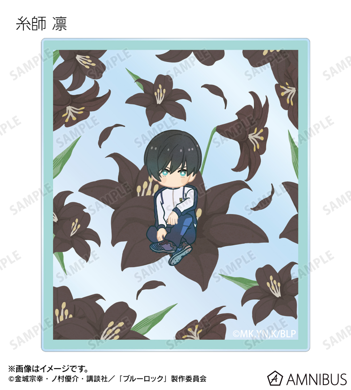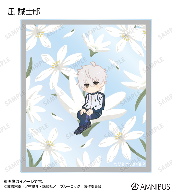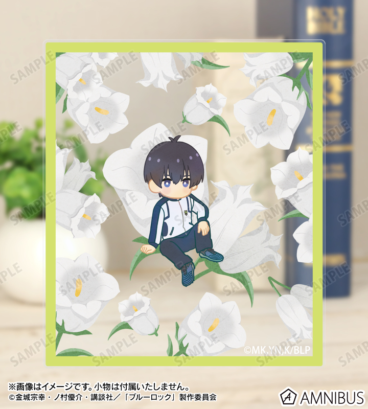 潔 世一、糸師 凛、凪 誠士郎、雪宮 剣優、乙夜 影汰、烏 旅人、蜂楽 廻、千切 豹馬、御影 玲王、氷織 羊、糸師 冴、オリヴァ・愛空、士道 龍聖のイラスト、各キャラクターをイメージした花をボタニカルデザインに落とし込んで繊細なタッチで新たに描き起こし、アクリルカードに仕上げました。