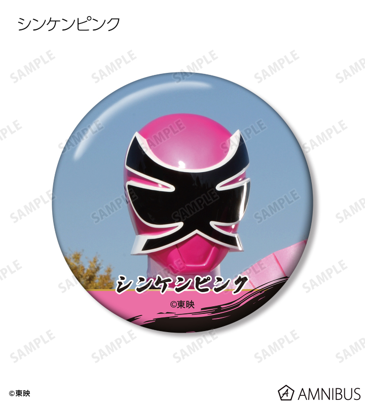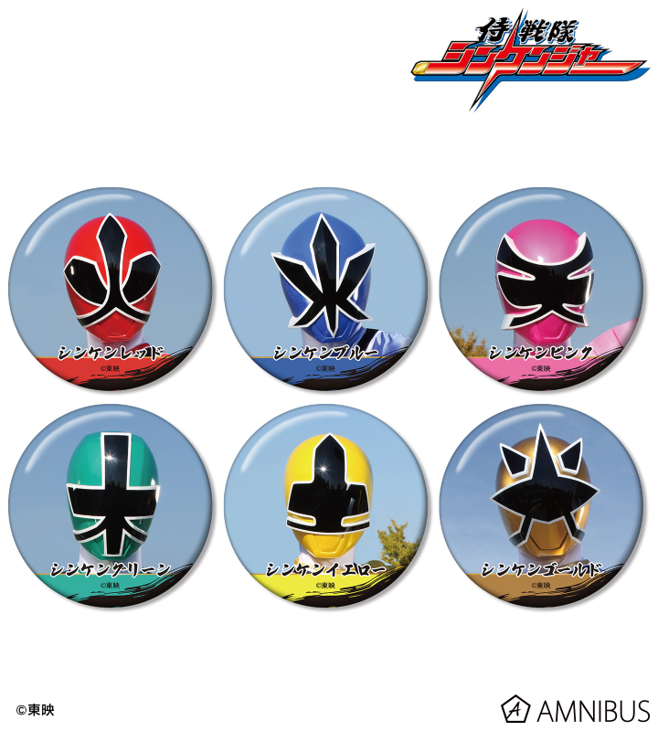 シンケンレッド、シンケンブルー、シンケンピンク、シンケングリーン、シンケンイエロー、シンケンゴールドを缶バッジに仕上げました。