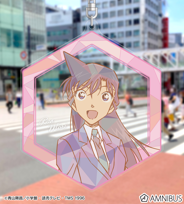 毛利蘭のイラストにプリズムを散りばめた模様を組み合わせ、BIGなアクリルキーホルダーに仕上げました。