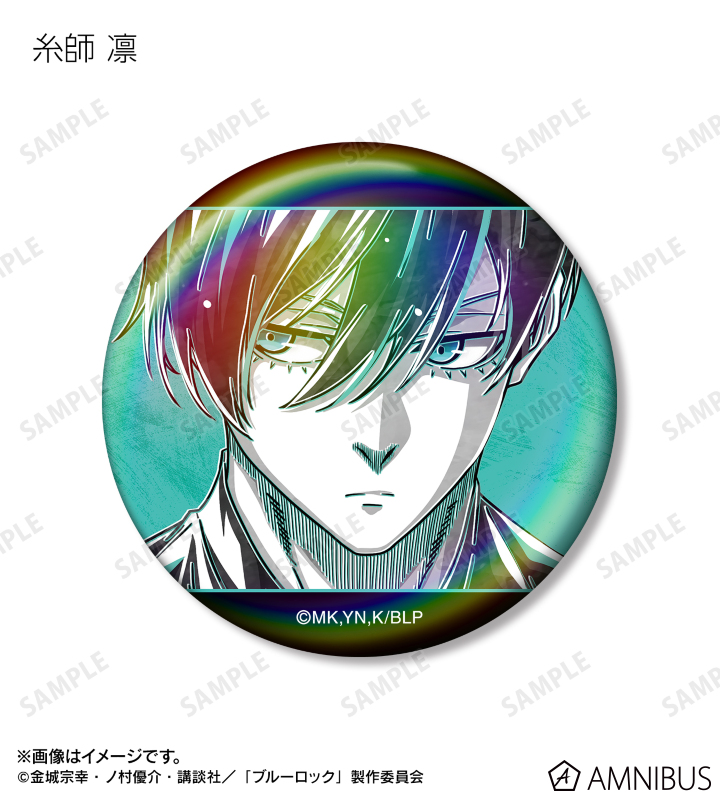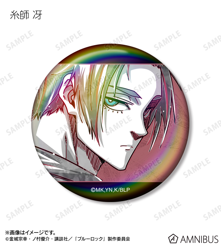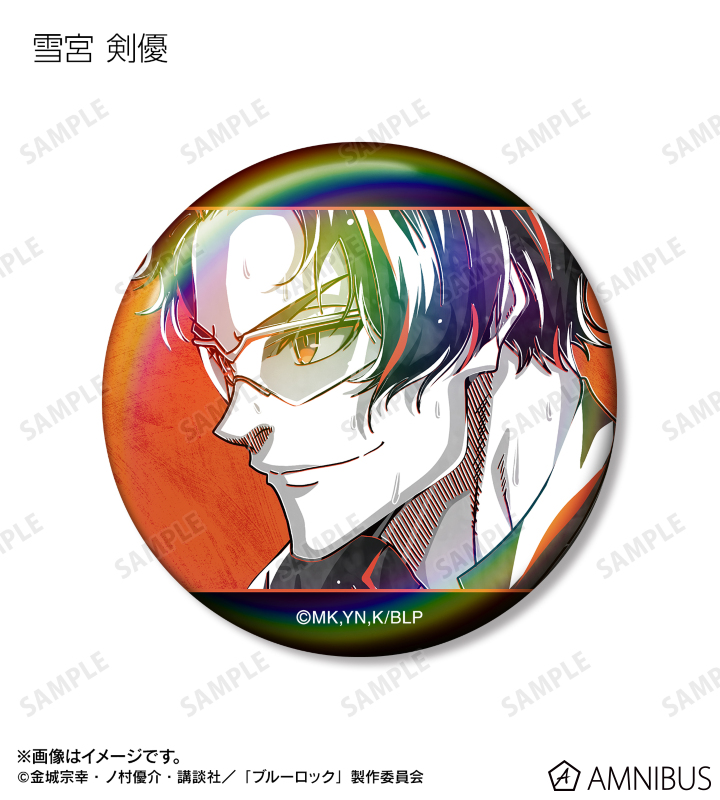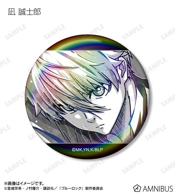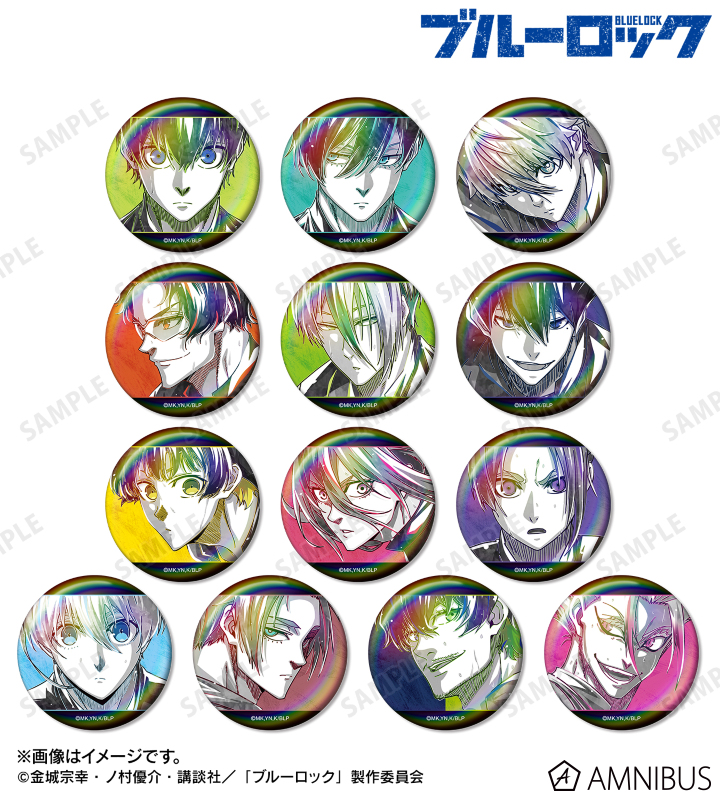 潔 世一、糸師 凛、凪 誠士郎、雪宮 剣優、乙夜 影汰、烏 旅人、蜂楽 廻、千切 豹馬、御影 玲王、氷織 羊、糸師 冴、オリヴァ・愛空、士道 龍聖のイラストを新たなタッチで魅力的に表現し、オーロラ加工を施した缶バッジに仕上げました。