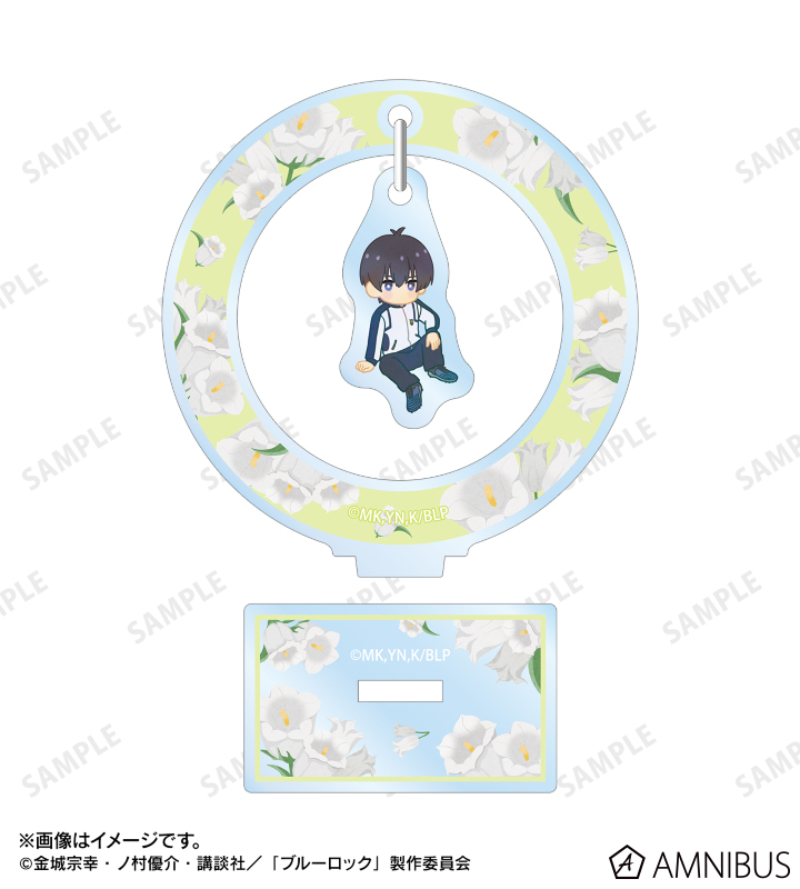 潔 世一のイラスト、各キャラクターをイメージした花をボタニカルデザインに落とし込んで繊細なタッチで新たに描き起こし、ゆらゆら動くアクリルスタンドに仕上げました。