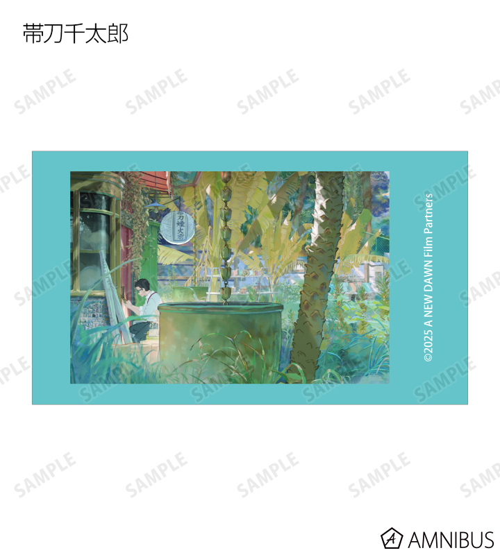 帯刀敬太郎、式森カオル、帯刀千太郎の印象的なシーンをインスタントカメラで撮影したようなデザインのイラストカード3枚セットに仕上げました。