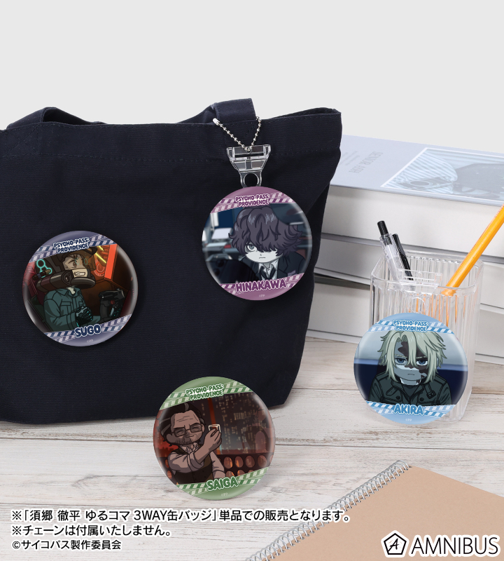 『劇場版 PSYCHO-PASS サイコパス PROVIDENCE』より、ゆるコマ 3WAY缶バッジの登場です。