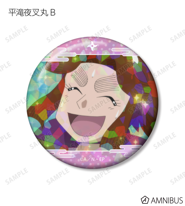 平滝夜叉丸の印象的なシーンをホログラム加工を施した缶バッジ2個セットに仕上げました。