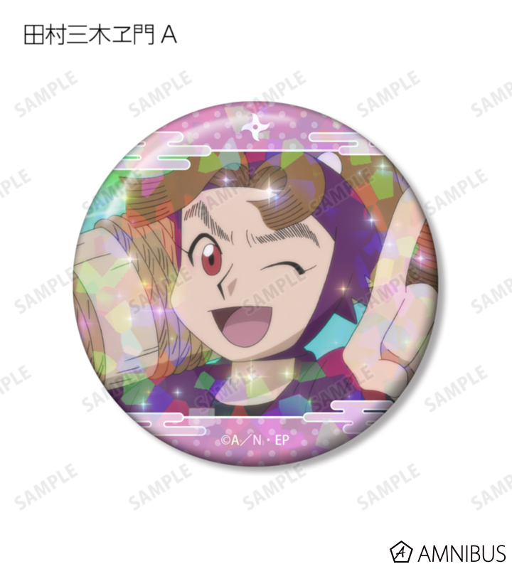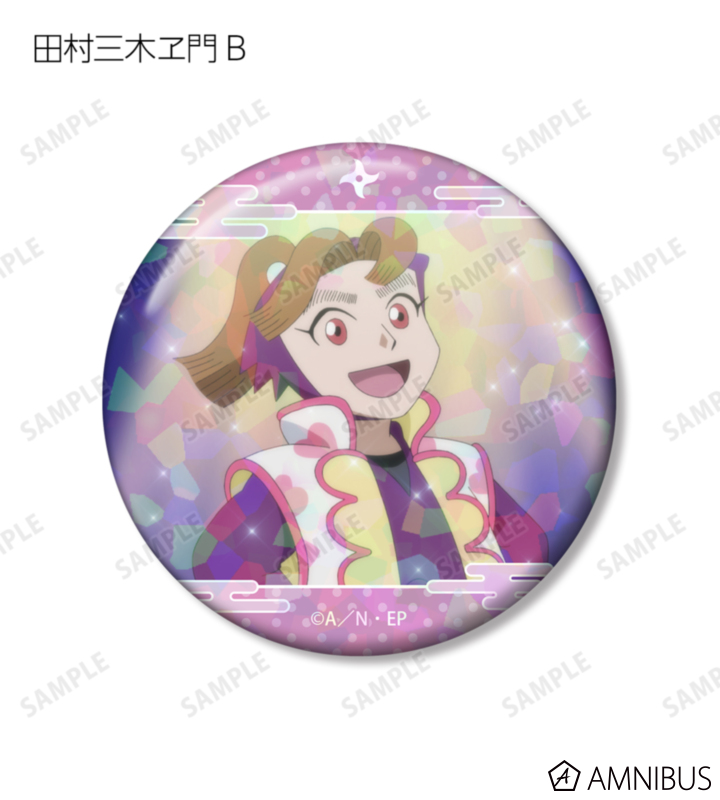 田村三木ヱ門の印象的なシーンをホログラム加工を施した缶バッジ2個セットに仕上げました。