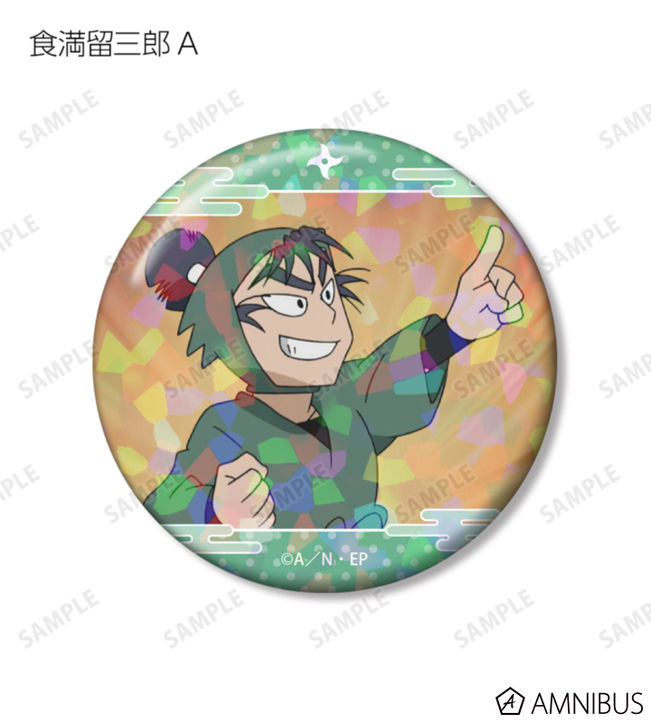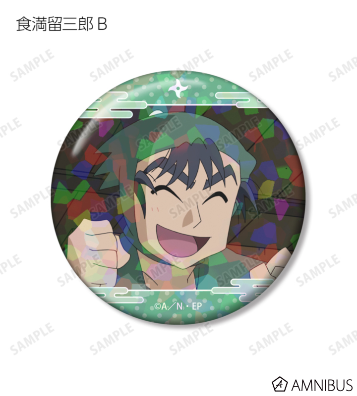 食満留三郎の印象的なシーンをホログラム加工を施した缶バッジ2個セットに仕上げました。
