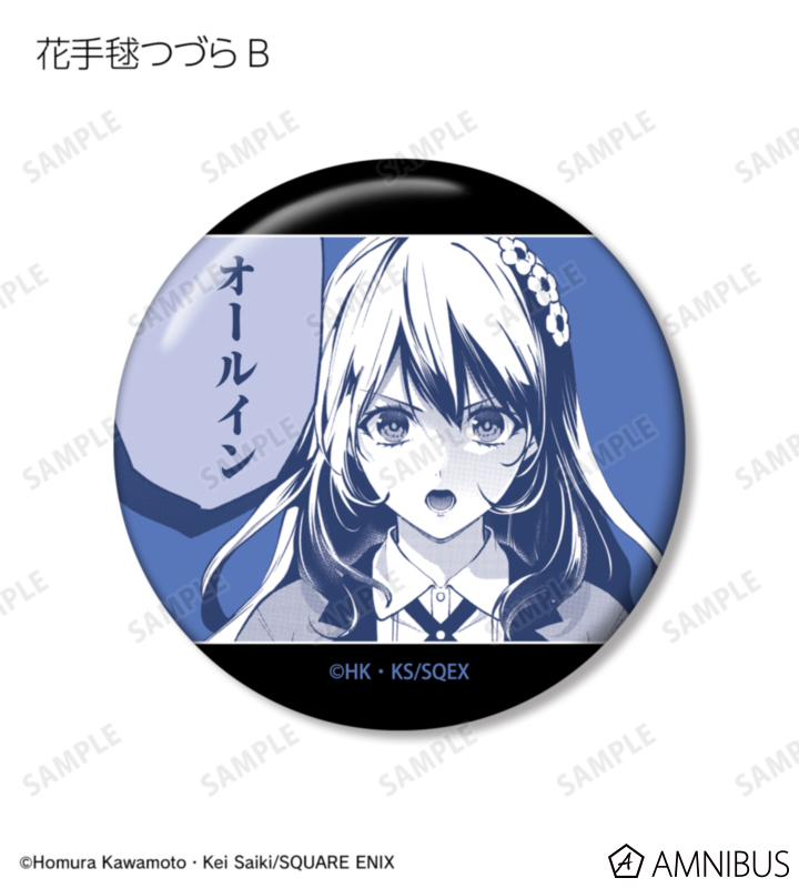 早乙女芽亜里、花手毬つづら、戸隠雪見、聚楽幸子、佐渡みくら、壬生臣 葵、三春滝咲良の原作コマイラストを缶バッジに仕上げました。