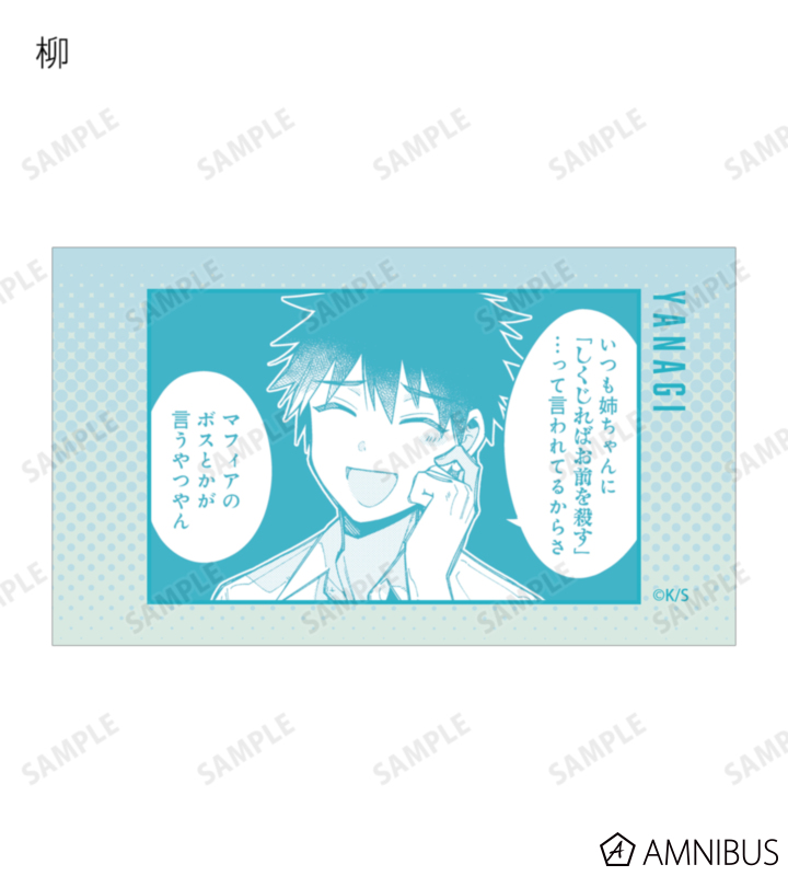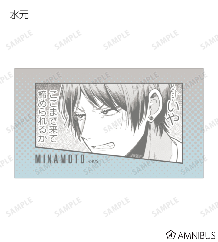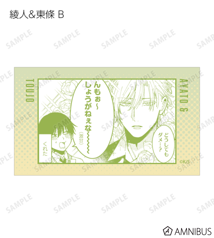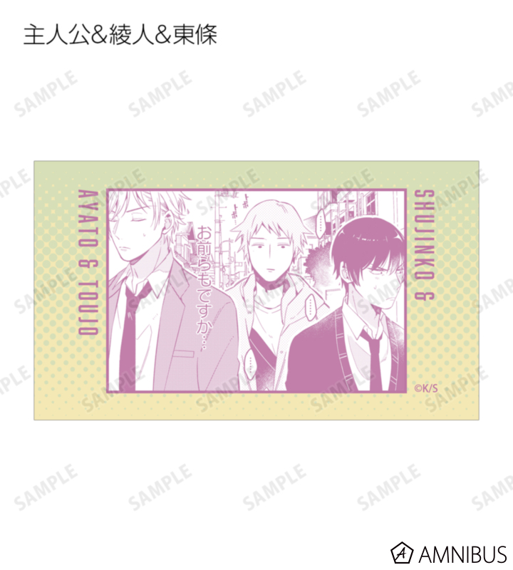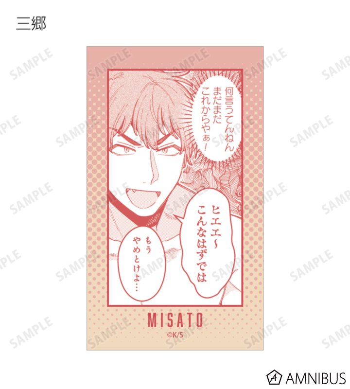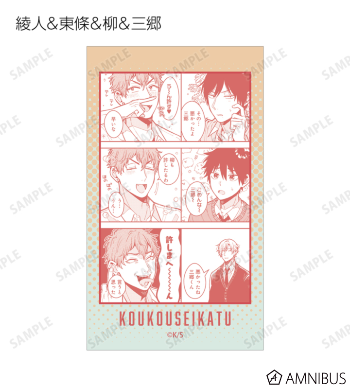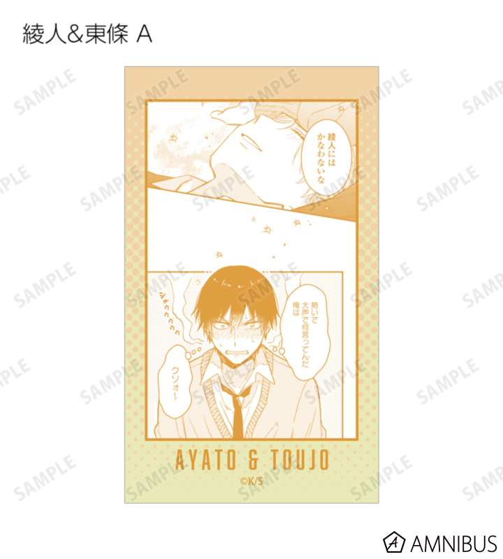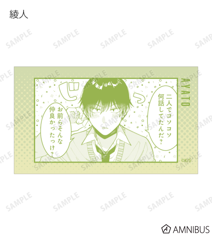 主人公、綾人、東條、柳、三郷、真山、水元、旗野の原作コマをイラストカードに仕上げました。