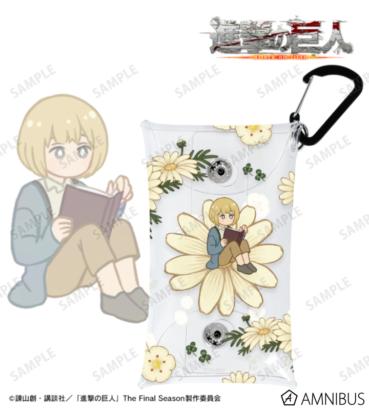 アルミンのイラストをボタニカルデザインに落とし込んで繊細なタッチで新たに描き起こし、小物入れやカード入れとしてはもちろん、様々な用途にご使用いただけるマルチケースに仕上げました。