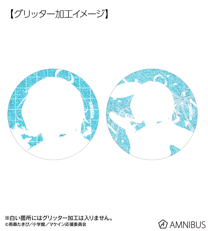八奈見 杏菜、焼塩 檸檬、小鞠 知花、温水 佳樹の描き下ろしイラストをグリッター加工を施した缶バッジに仕上げました。