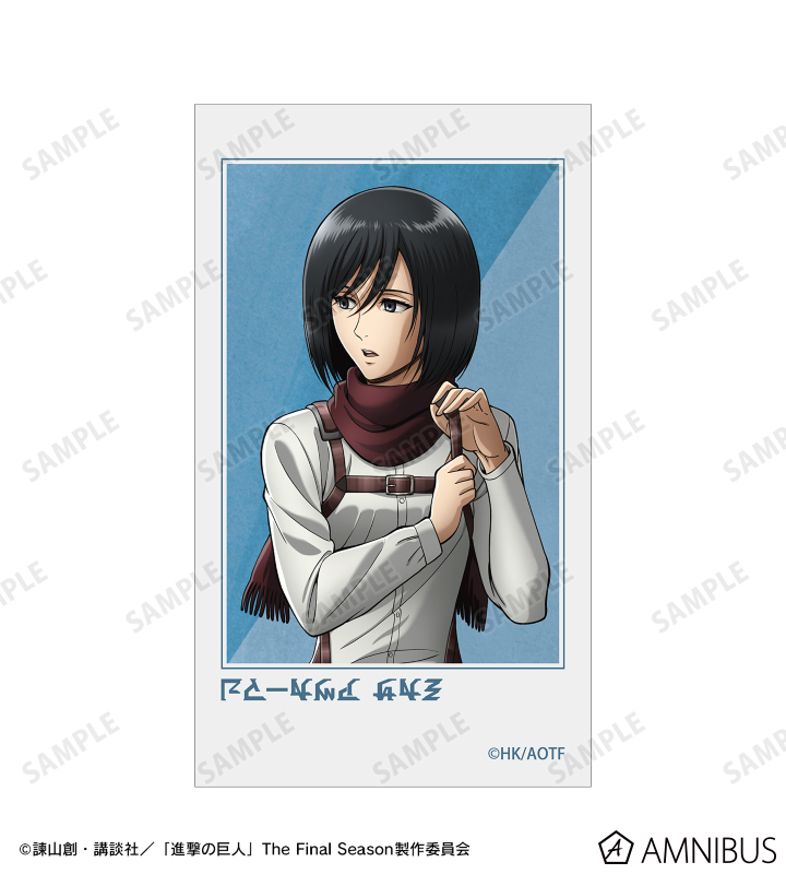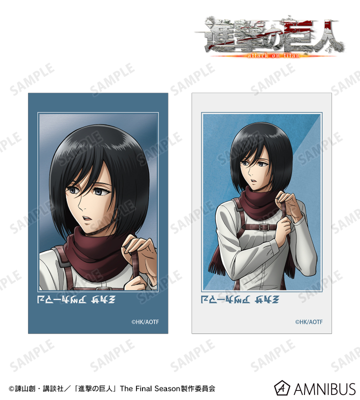 ミカサのイラストをインスタントカメラで撮影したようなデザインのイラストカード2枚セットに仕上げました。