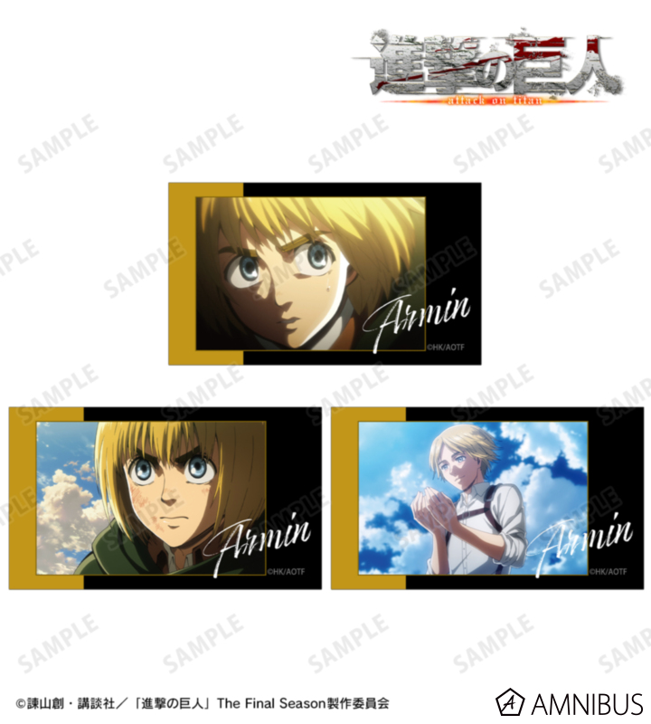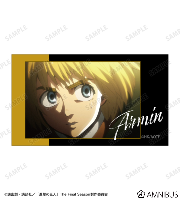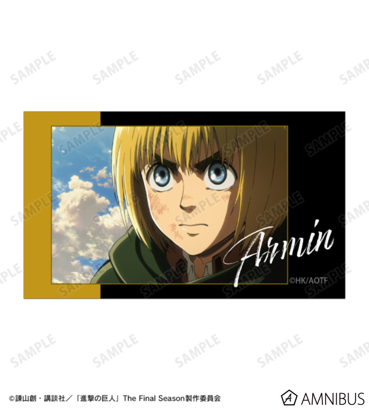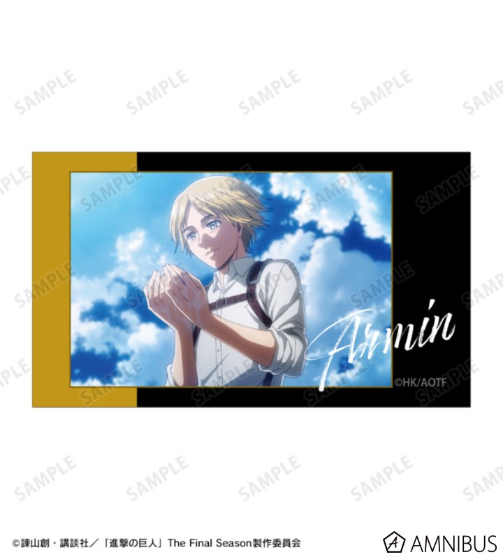 アルミンの印象的なシーンをインスタントカメラで撮影したようなデザインのイラストカードに仕上げました。