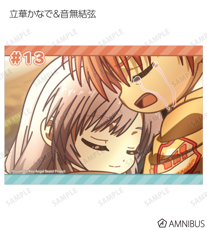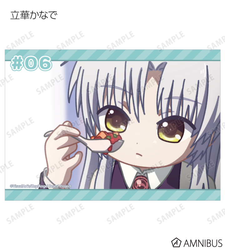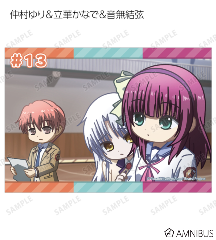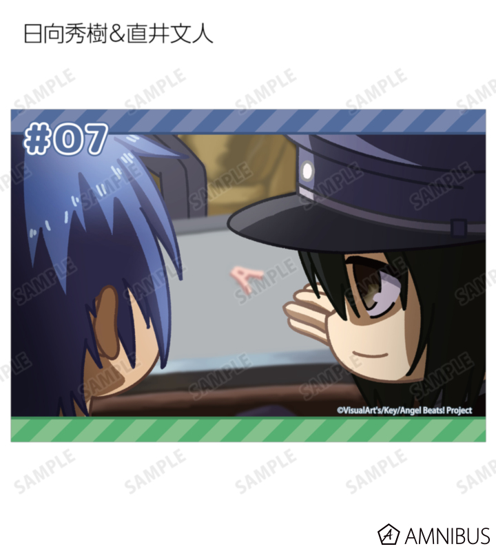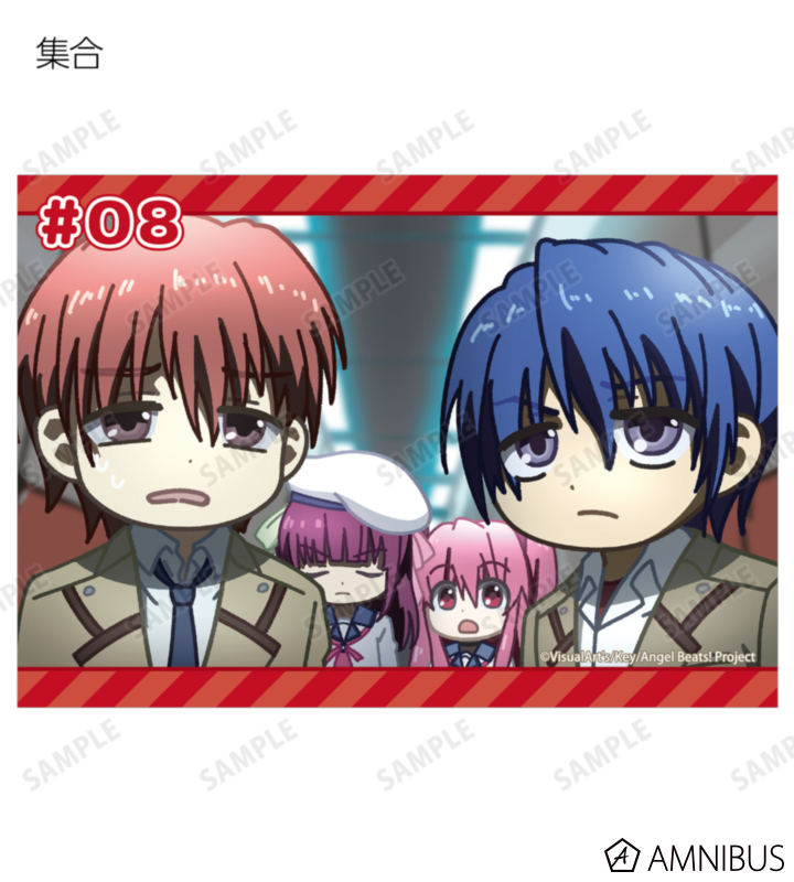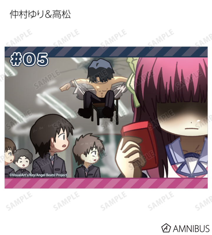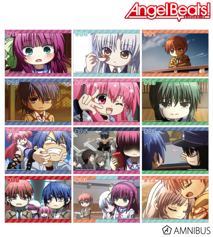 仲村ゆり、立華かなで、音無結弦、日向秀樹、ユイ、直井文人、高松の印象的なシーンをそのままデフォルメで再現し、ブロマイドに仕上げました。