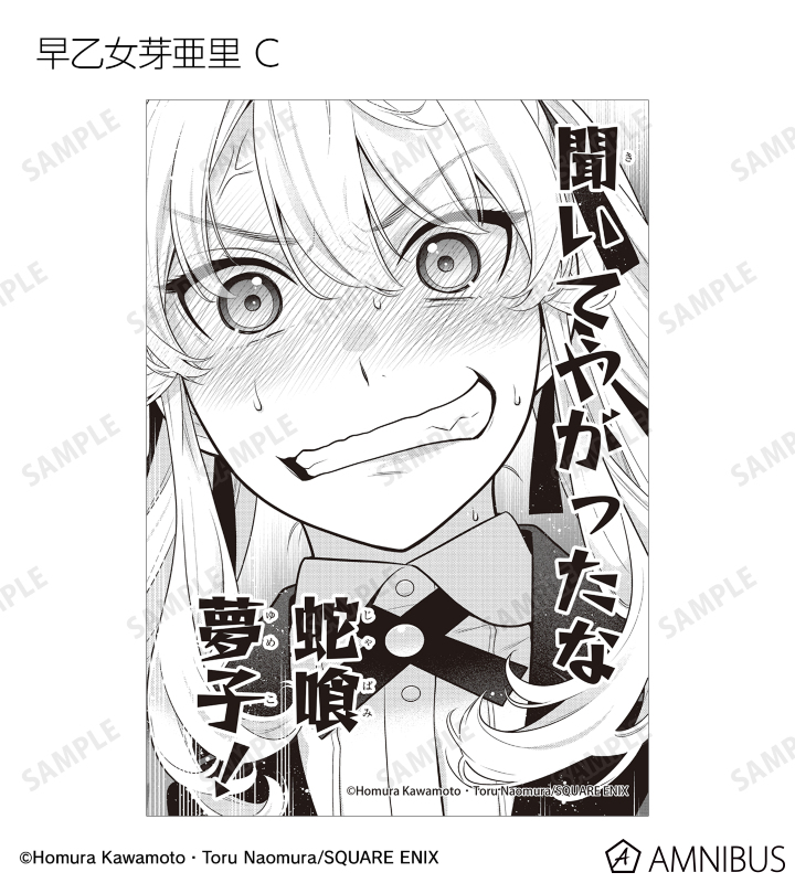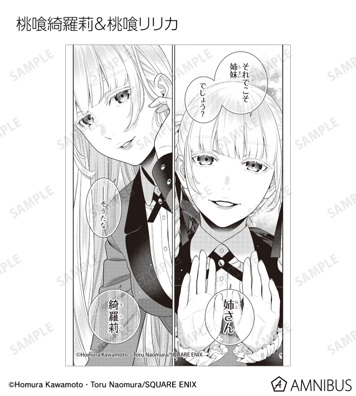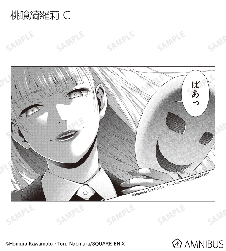 蛇喰夢子、早乙女芽亜里、桃喰綺羅莉、桃喰リリカ、五十嵐清華、生志摩 妄、皇 伊月、西洞院百合子、夢見弖ユメミ、黄泉月るなのカラーイラスト、原作コマイラストをブロマイドに仕上げました。