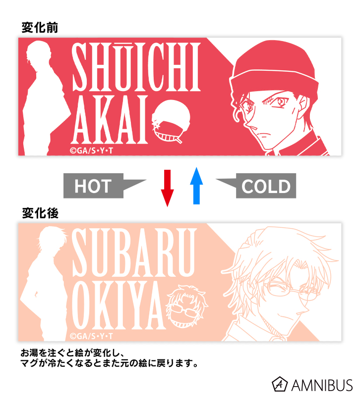 温度に反応する特殊なインクを使用しており、マグカップに温かい飲み物を入れると、赤井秀一の姿が沖矢昴へと姿を変えます。