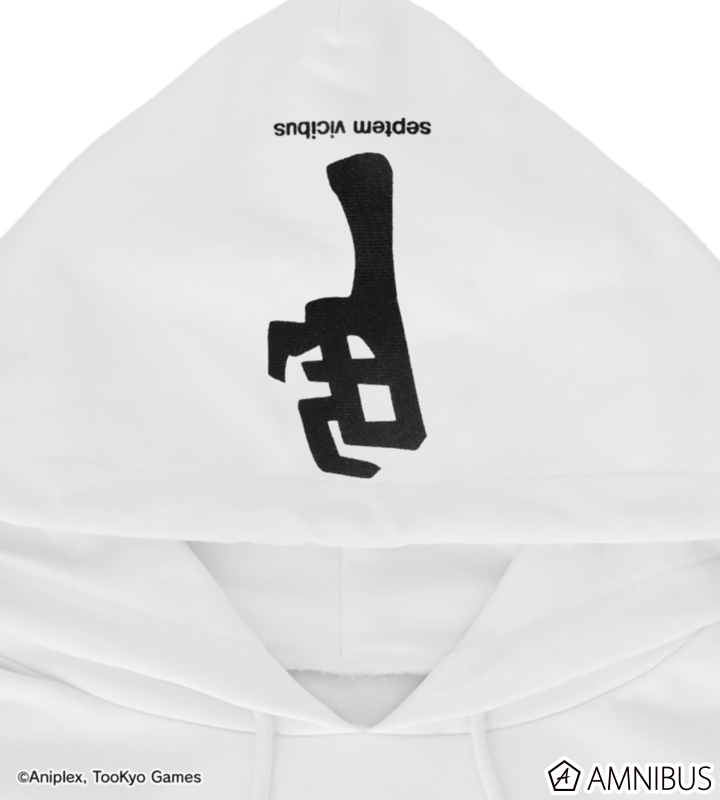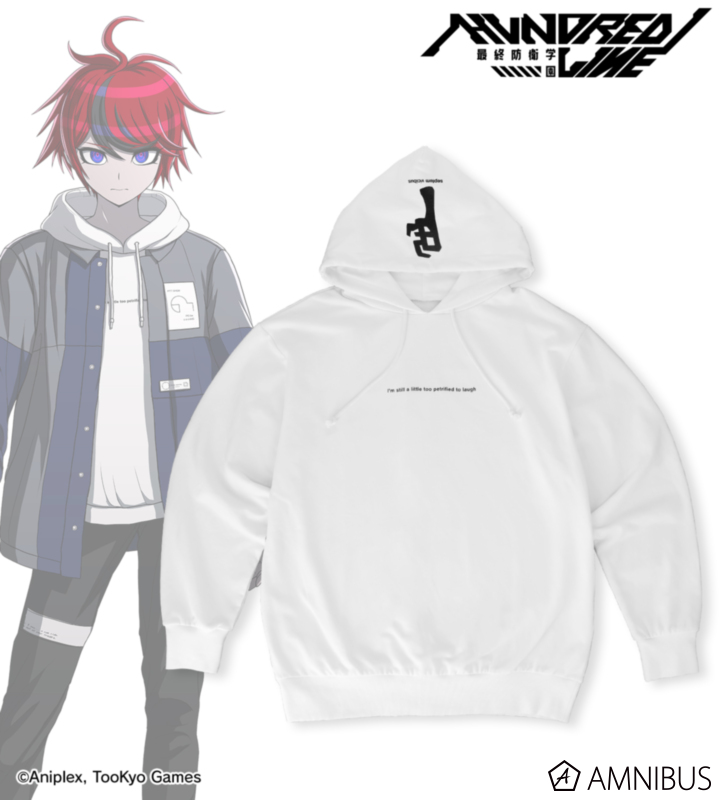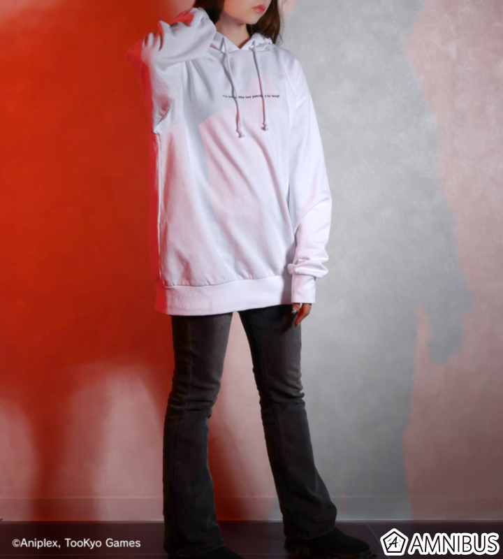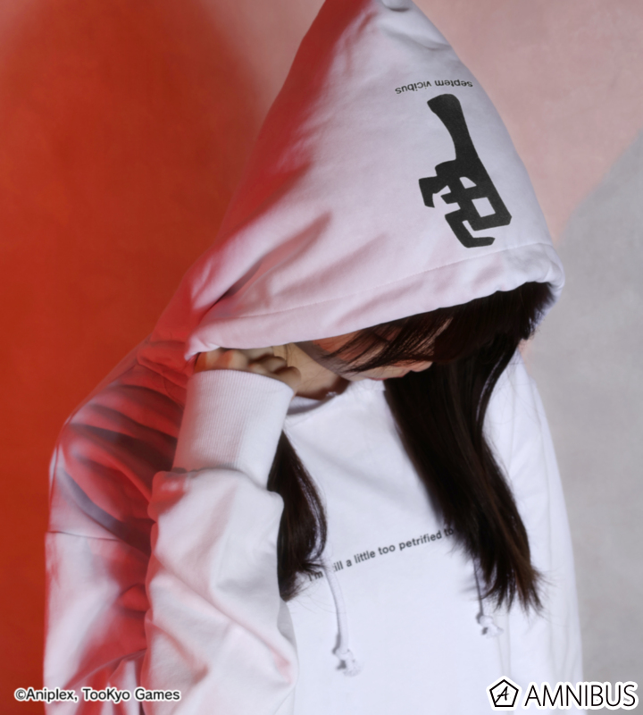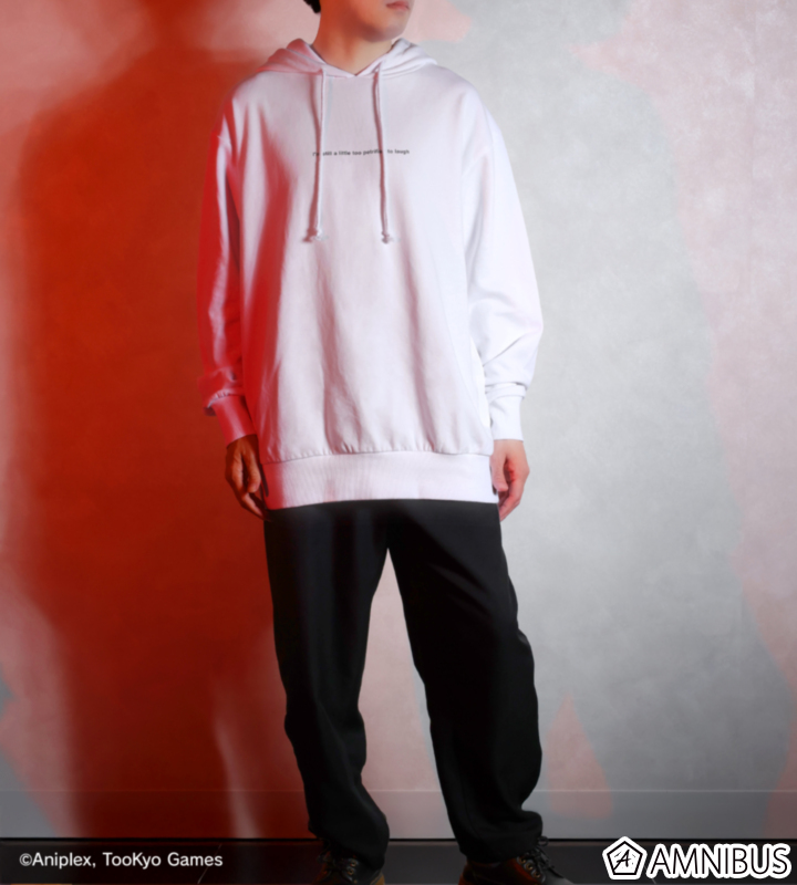 フロントにはアクセントとなる英字を、バックのフード部分には作中のデザインをプリントをしております。