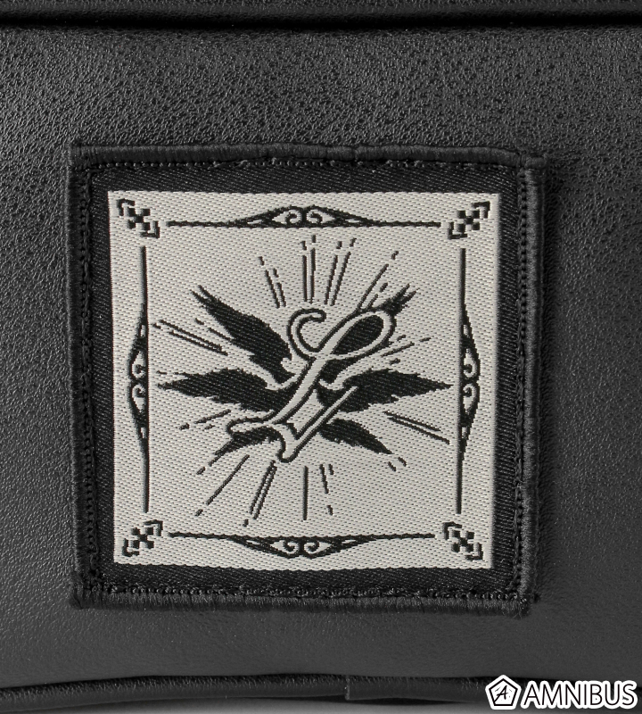 ルシフェルの羽とイニシャルを組み合わせたデザインのタグをフロントにレイアウトしました。