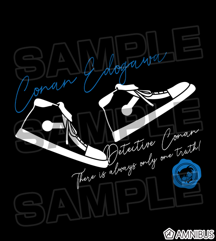 江戸川コナンからイメージしたキック力増強シューズやアイコンマークなどを組み合わせたデザインをプリントしました。