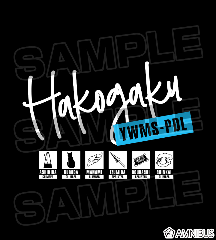 箱根学園の英字と作品タイトルを組み合わせたデザインに、葦木場 拓斗、黒田 雪成、真波 山岳、泉田 塔一郎、銅橋 正清、新開 悠人をイメージしたアイコン、名前、脚質を合わせてレイアウトしました。