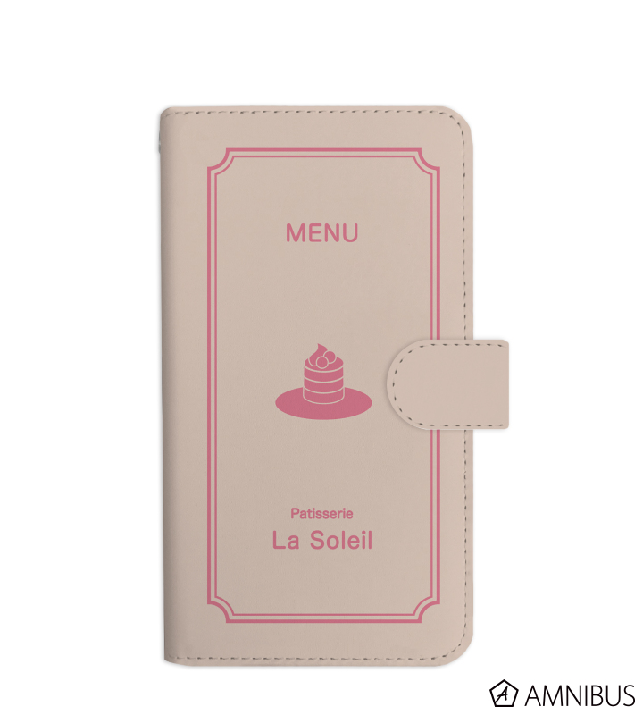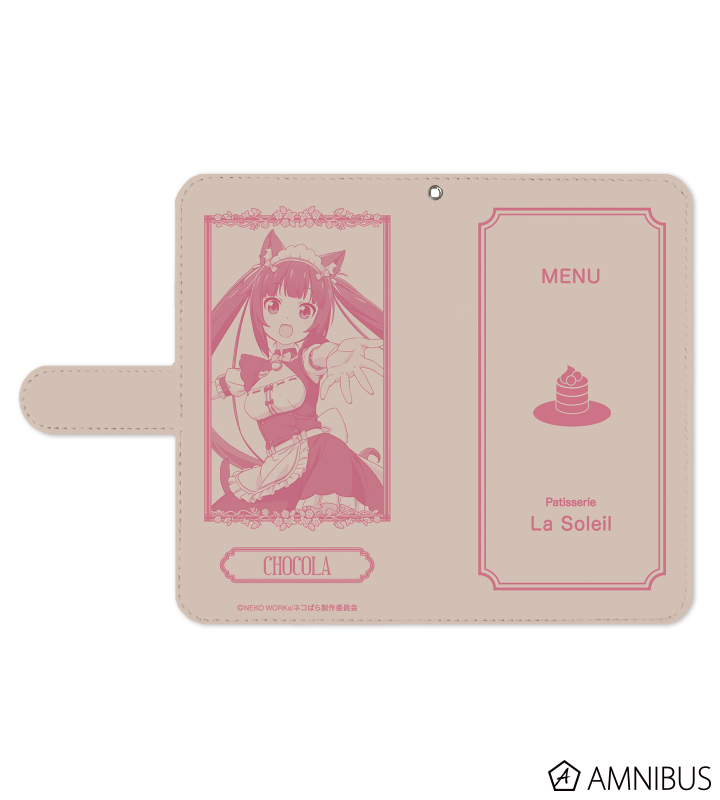 パティスリ「ラ・ソレイユ」のメニューをイメージした表面のデザインに、背面にはショコラと名前をレイアウトして、キャラクターからイメージしたカラーリングで仕上げました。