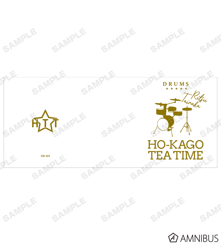 律のドラムのシルエットや名前、放課後ティータイムのロゴマークなどをレイアウトしてデザインしました。