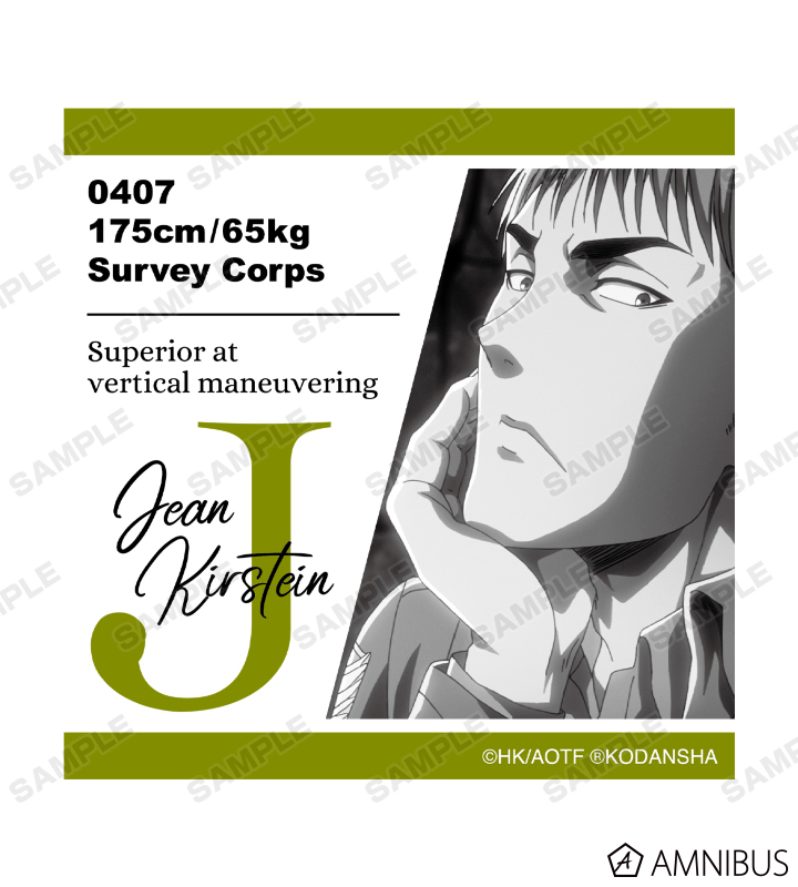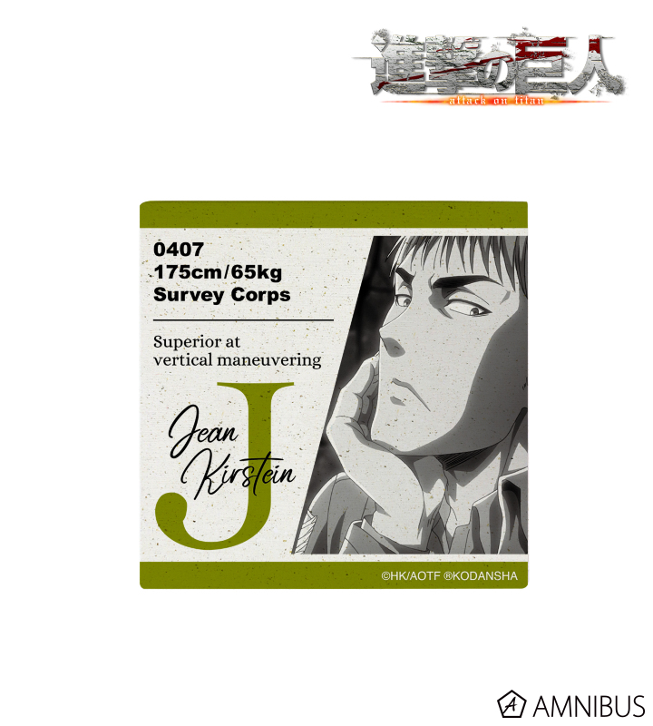 ジャンと名前や誕生日、身長体重などのパーソナル情報をレイアウトし、キャラクターからイメージしたカラーリングで仕上げました。