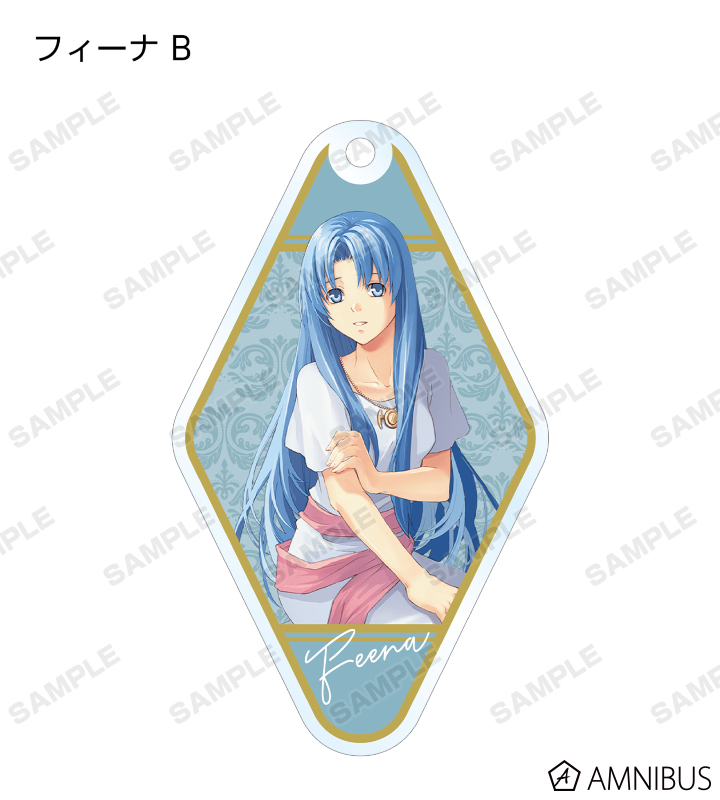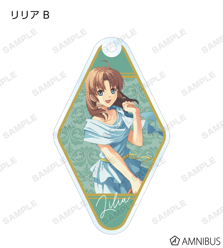 アドル・クリスティン、フィーナ、レア、リリアを名前や作品タイトルと合わせて、キャラクターからイメージしたカラーリングのアクリルキーホルダーに仕上げました。
