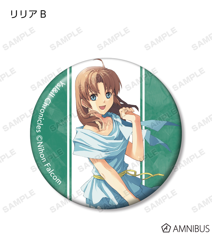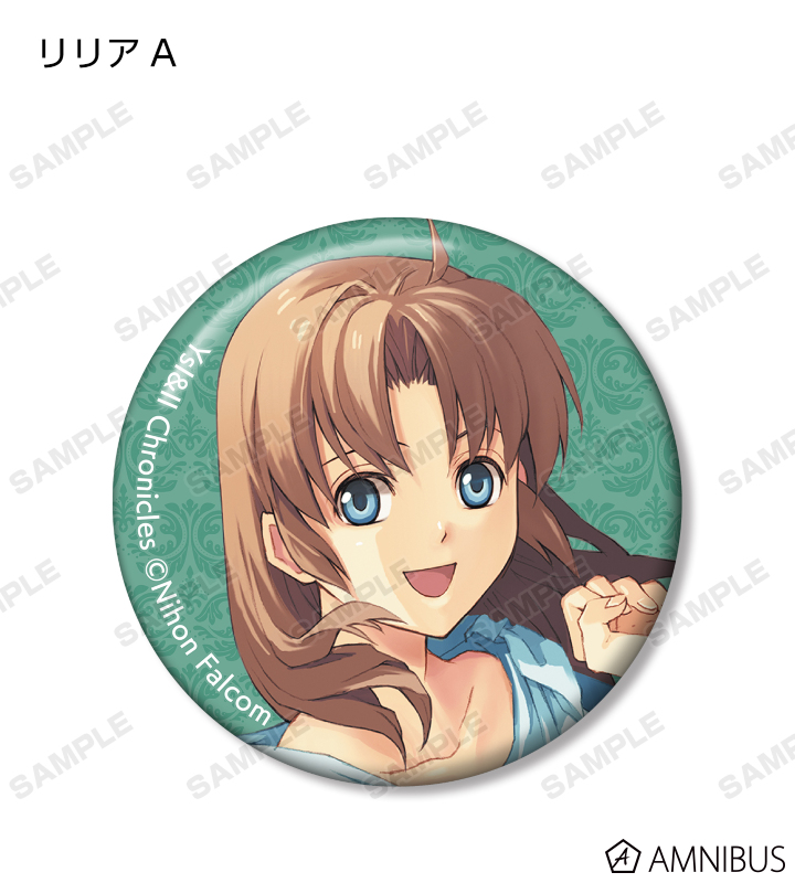 アドル・クリスティン、フィーナ、レア、リリアをキャラクターからイメージしたカラーリングの缶バッジに仕上げました。