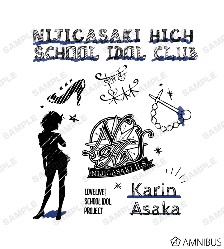 朝香果林の衣装姿や装飾品、名前、サインなどをスケッチ風のタッチで新たに描き起こしました。