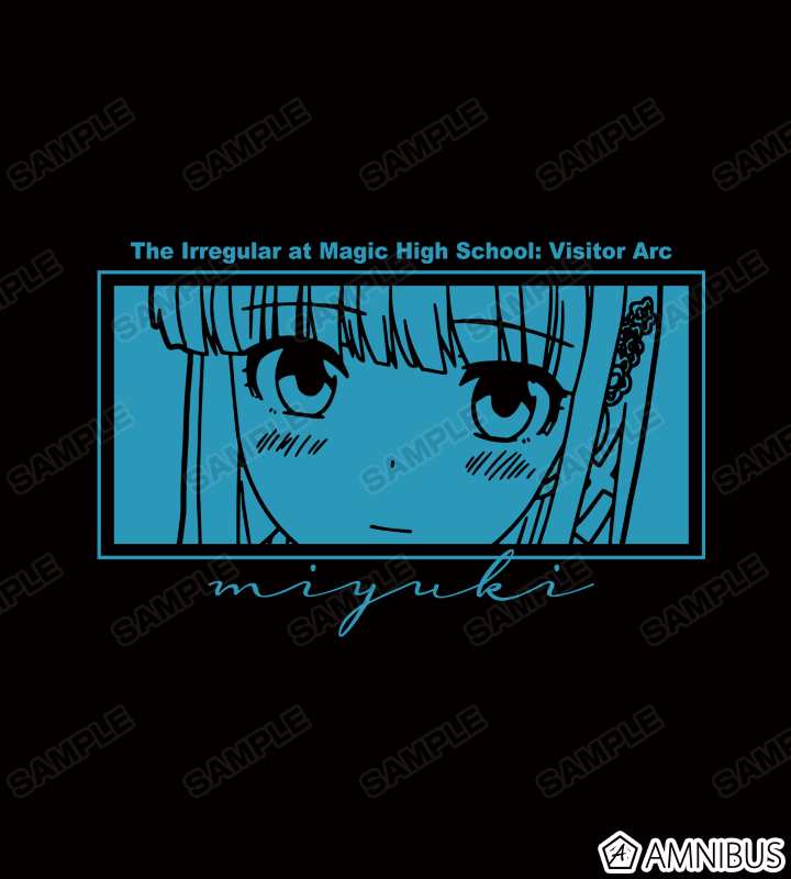 司波深雪をフレーミングし、名前や作品タイトルと合わせてレイアウトしたデザインをキャラクターからイメージしたカラーリングで仕上げました。