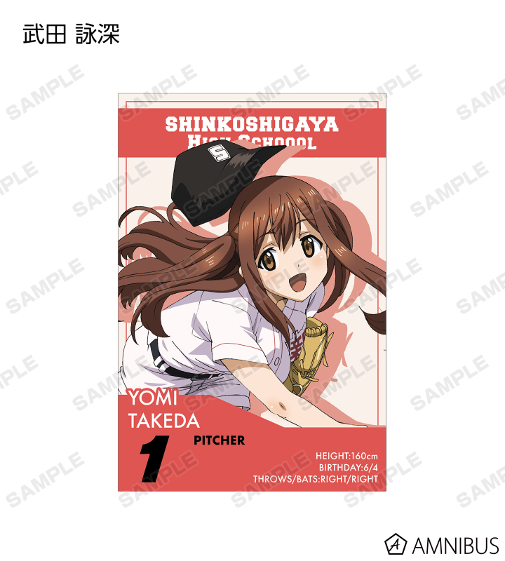 武田 詠深、山崎 珠姫、川口 息吹と名前や背番号などの選手情報を合わせてレイアウトし、野球カードをイメージしたデザインに仕上げました。