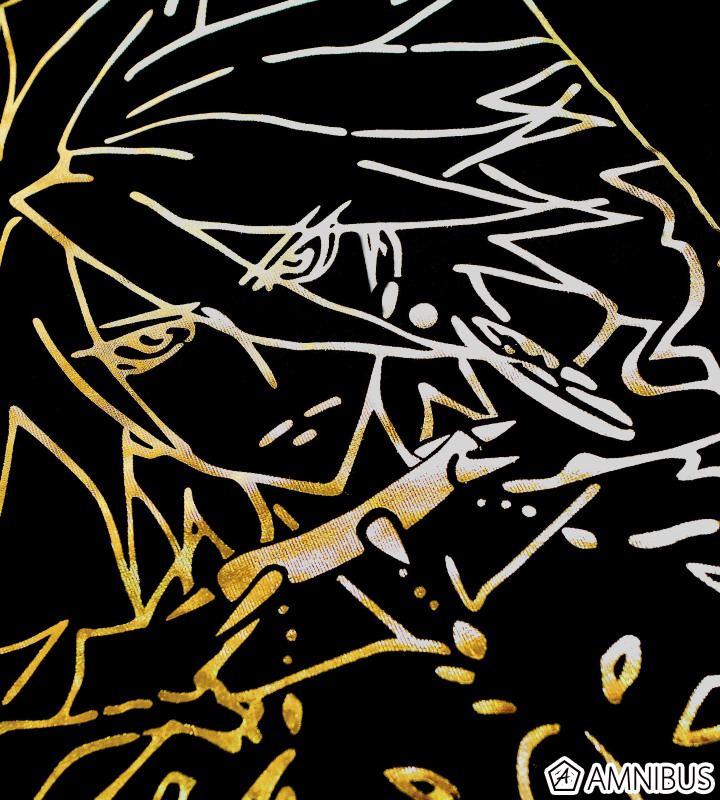赤のランサーを、黒地にゴールド箔でプリントすることにより、インパクト抜群のTシャツに仕上げました。