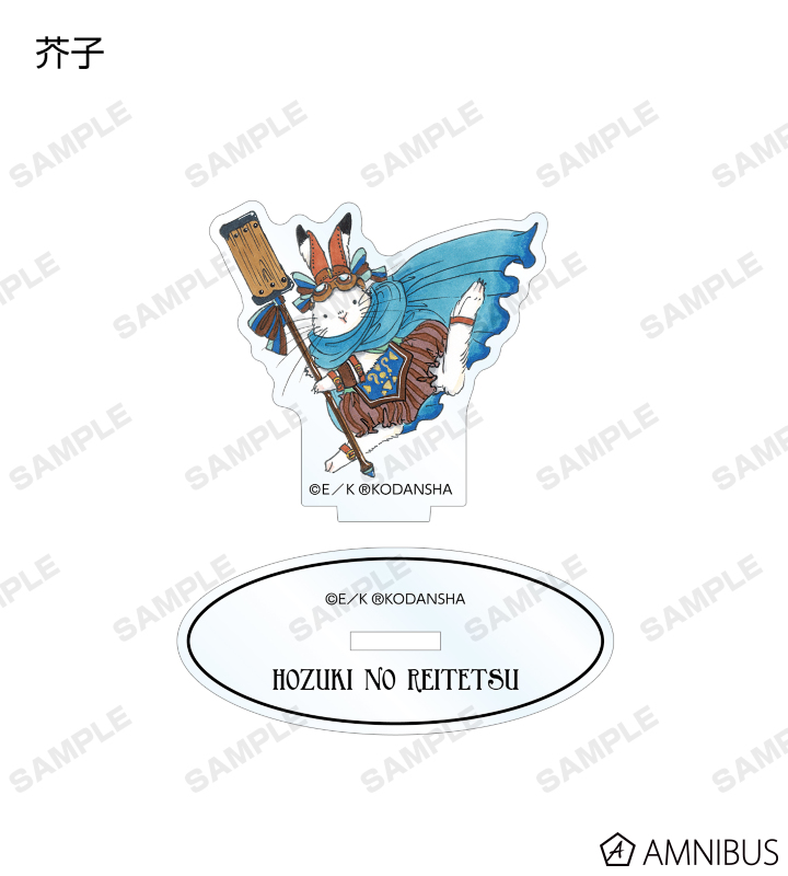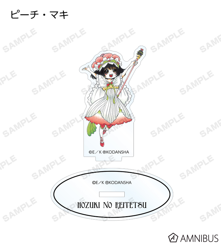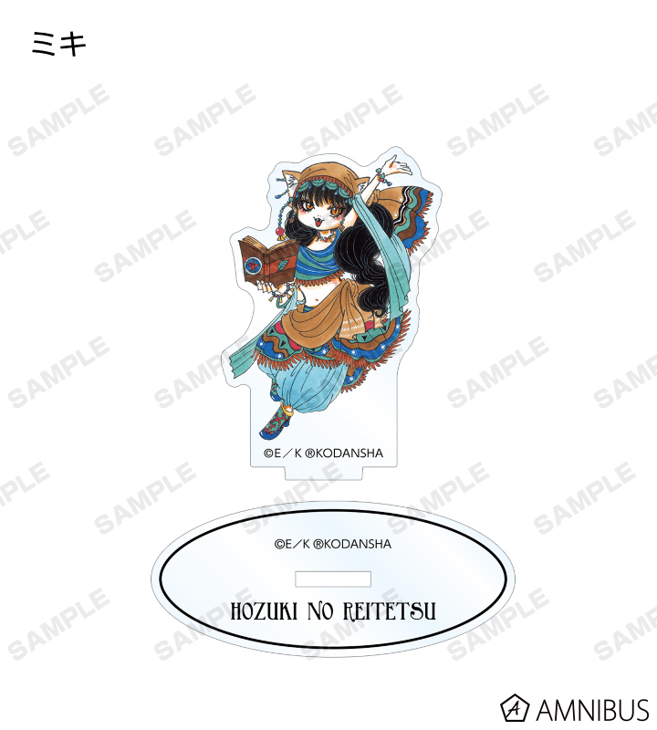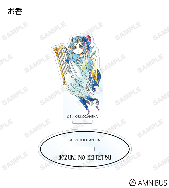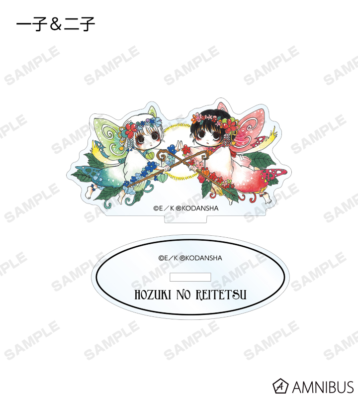 江口夏実描き下ろしイラストのファンタジー風の衣装を身にまとった鬼灯、桃太郎ブラザーズ、唐瓜&茄子、一子&二子、ピーチ・マキ、ミキ、芥子、火車、お香、白澤、妲己、檎をアクリルスタンドに仕上げました。