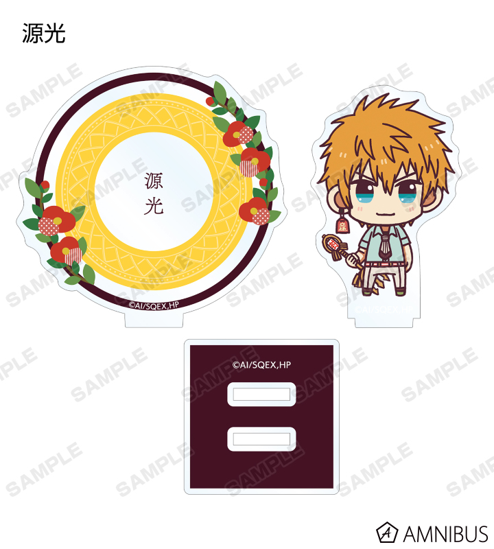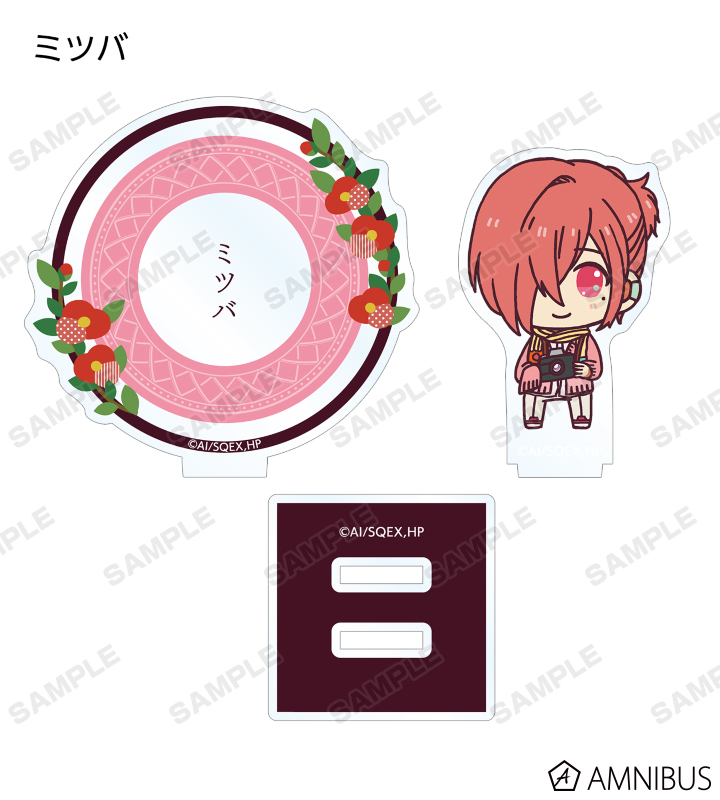 名前や椿の花などのモチーフをレイアウトしたジオラマ風のアクリルスタンドに仕上げています。