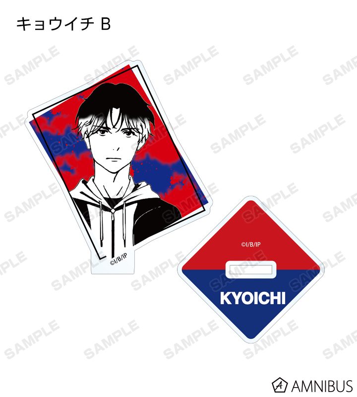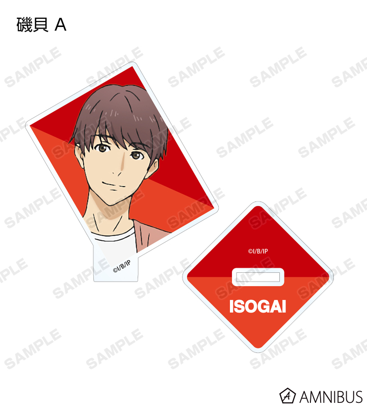 マコト、タカシ、キョウイチ、ヒロト、磯貝を作品からイメージしたデザインのアクリルスタンドに仕上げました。