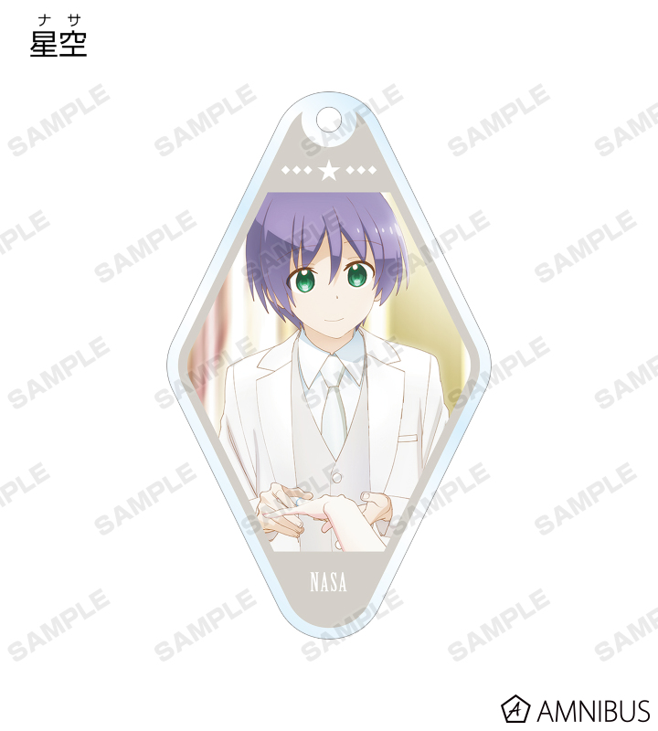司と星空のイラストと名前、モチーフと合わせてレイアウトしたアクリルキーホルダーに仕上げました。