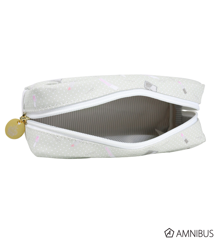 中面はポーチのデザインが映えるよう、シンプルなグレーのストライプでデザイン。