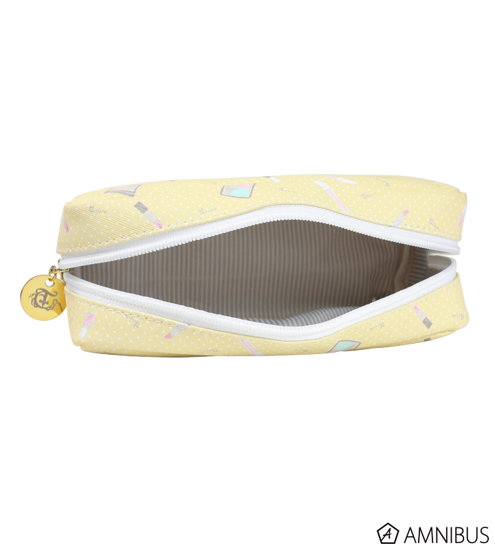 中面はポーチのデザインが映えるよう、シンプルなグレーのストライプでデザイン。