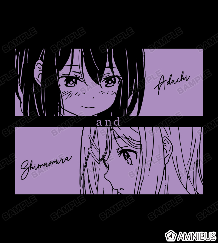 安達としまむらをフレーミングし、名前と合わせてレイアウトしたデザインに仕上げました。