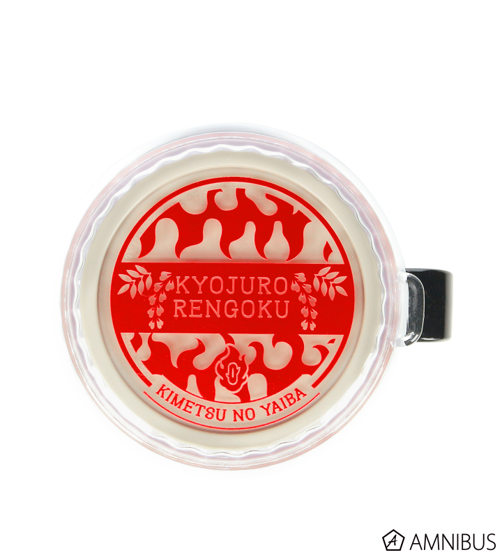 煉󠄁獄杏寿郎の日輪刀の鍔や羽織の柄、藤の花などを合わせてレイアウトしたデザインに仕上げています。