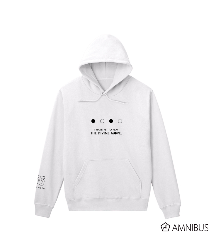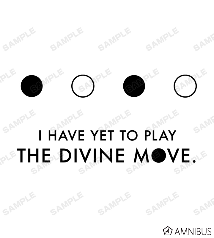 藤原佐為の台詞「私はまだ神の一手を極めていない」の英訳と碁石をイメージしたモチーフを合わせてレイアウトしたデザインに仕上げました。