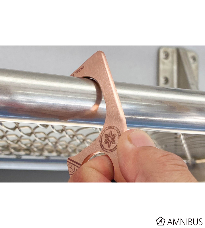 多くの電車、バスで採用されている直径32mmまでのパイプに掛けられるよう設計となっており、直接手で触る製品のため、安全性を確保した滑らかな曲面のヘアライン加工を施しています。