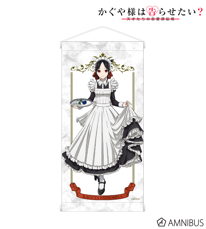 アニメイトで開催された「かぐや様は給仕したい?~天才たちの恋愛頭脳戦~」描き下ろしイラストのメイド服姿の四宮かぐやをミニサイズのタペストリーに仕上げました。