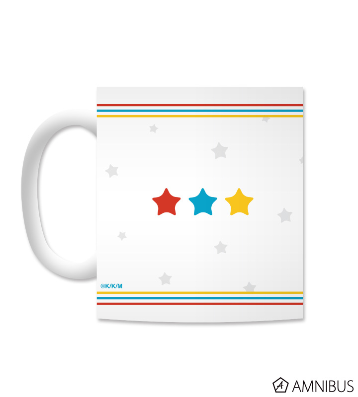 3人が走っている場面と星を使用し、作品のメインカラーの赤、青、黄色で仕上げました。