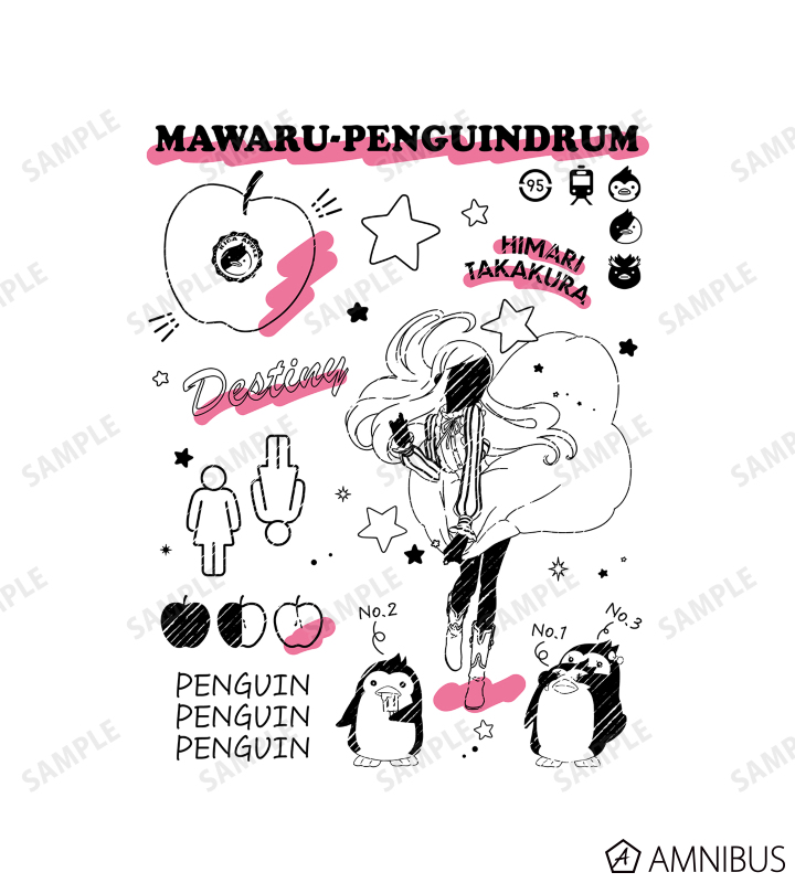 高倉 陽毬やペンギンなどをスケッチ風のタッチで新たに描き起こしました。