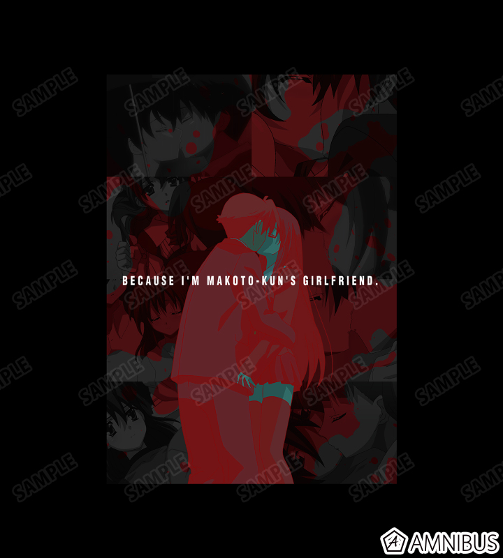 場面写を組み合わせたデザインの中央に、桂 言葉の台詞「私、誠くんの彼女ですから。」の英訳をレイアウトしました。